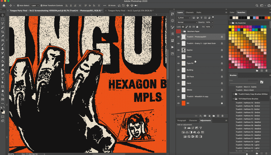 Dropping in a nice photocopy texture, or adding some extra depth with some halftone brushes is the sort of thing that will take your poster from “dope” to “super-ultra-holy-shit how did you make that you’re a friggen genius" sorta dope.